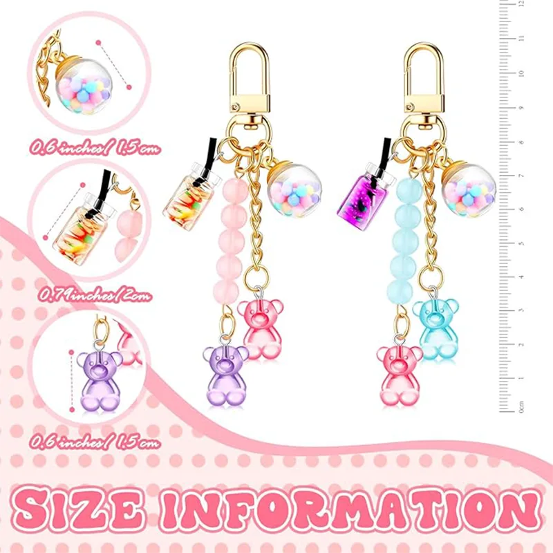Nøglering i akrylmateriale har et lille bjørnevedhængsdesign, kombineret med andre søde former, der ser legende og charmerende ud og fanger øjet med et øjeblik. Den lyse farvekombination gør nøgleringen i sig selv levende. Når den hænges på kroppen eller genstande, bliver den let i fokus og kan også fremvise ens personlige smag. Dette sæt med 2 dele kommer i forskellige farver og stilarter. De kan byttes til personlig brug eller deles med bedste venner og familie. Uanset om de er parret med forskellige tasker eller givet som små gaver, er de alle meget velegnede.