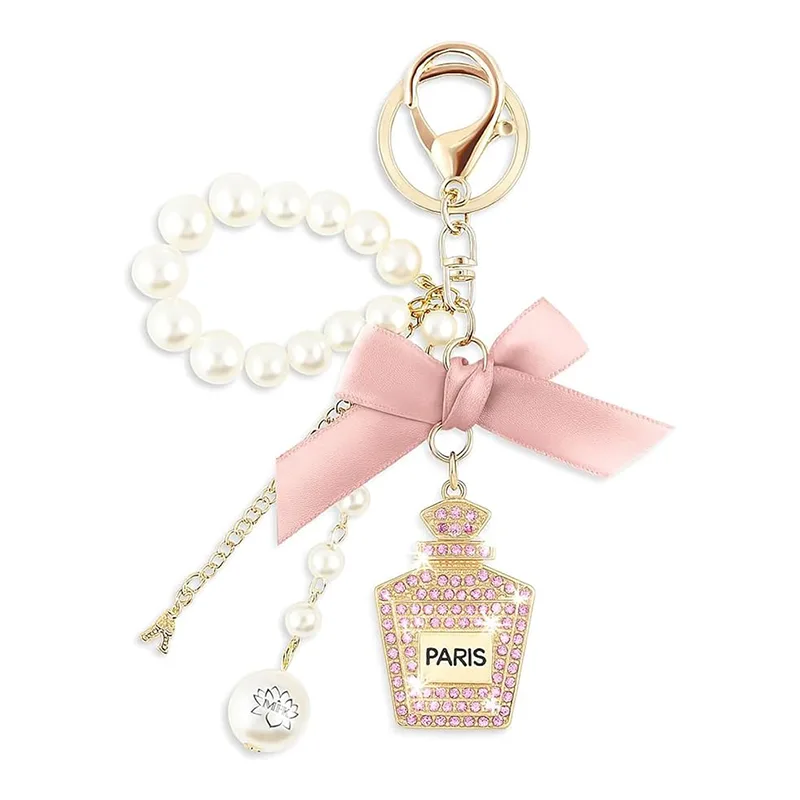 Sød luksusnøglering antager en omhyggeligt udskåret parfumeflaskeform med skinnende perler og krystaller indlagt på overfladen, der udstråler en følelse af luksus og feminin charme. En anden kombinerer klassisk bogstavdesign med et lille hjerteformet vedhæng, dekoreret med perle- og gulddetaljer. Det er både moderigtigt og elegant. Begge har et højt udseende og viser fuldt ud unik smag. Det overordnede design er udsøgt og kompakt, uden nogen prangende fornemmelse. Den kan hænges på en taske eller nøgle og udstråler en følelse af luksus på en lavmælt måde, som let fanger øjet og fremhæver bærerens sans for mode. Uanset om det er linjepoleringen af parfumeflasken eller den hjerteformede samling af bogstavnøgleringen, er de alle udsøgt udformet uden ru eller grater. Indlægningen af perler og krystaller er fast og falder ikke let af. Hver detalje udstråler en højkvalitets tekstur.