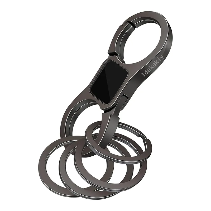 Den leveres med 4 ekstra nøgleringe. Uanset om det er bilnøgler, nøgler til hjemmet, adgangskort eller kort til offentlig transport, kan de alle hænges separat og sige farvel til besværet med en nøglebundt viklet sammen. Det kan håndtere forskellige scenarier såsom familie og rejser. Zinklegeringsmateriale er robust og holdbart. Det er ikke let at beskadige, selv efter flere åbninger og adskillelser. Dens levetid er meget længere end for almindelige nøgleringe med clips. Det er ikke nødvendigt at udskifte det ofte, hvilket er både problemfrit og omkostningseffektivt. Den aftagelige nøglering har et moderne og enkelt design uden overflødige dekorationer, men udstråler alligevel en skarp og sofistikeret kvalitet. Uanset om det er til mænds daglige brug eller som en praktisk lille gave, ser det ikke malplaceret ud.