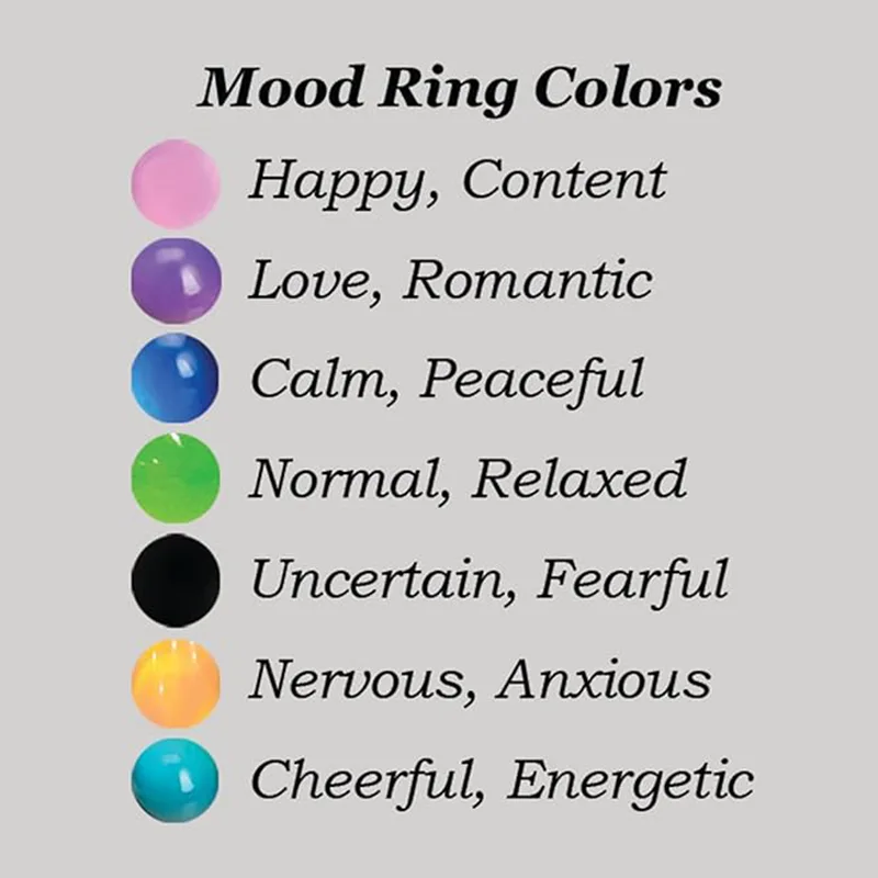 Hver ring er placeret i en speciel hjerteformet æske, som kommer med et følelsesmæssigt ringdiagram for at forstå betydningen af hver farve, og er klar til at blive givet som gave.