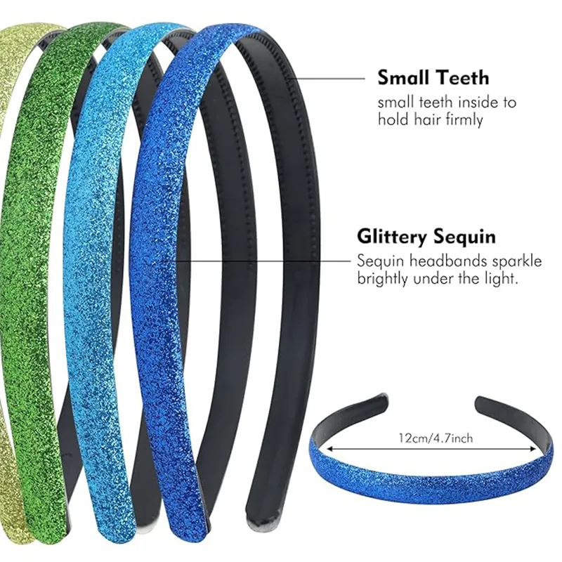 Flere anvendelsesscenarier: Glitterfestligheder klæder plastikpandebånd på er velegnede til forskellige lejligheder, fra hverdagstøj til bryllupper, PROM, fester osv. De er dekorative hårbånd, der kan tilføje et strejf af lysstyrke til enhver stil og er velegnede til kvinder, piger, teenagere og børn.