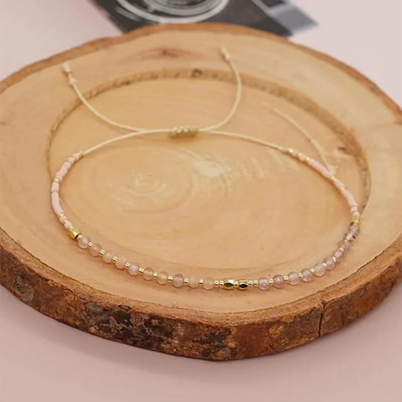 String kvinder små perler armbånd er et armbånd lavet af naturlige halvædelsten. Disse sten er nøje udvalgt af os og har unikke mønstre, farver og energier. Bær dem venligst med tillid.