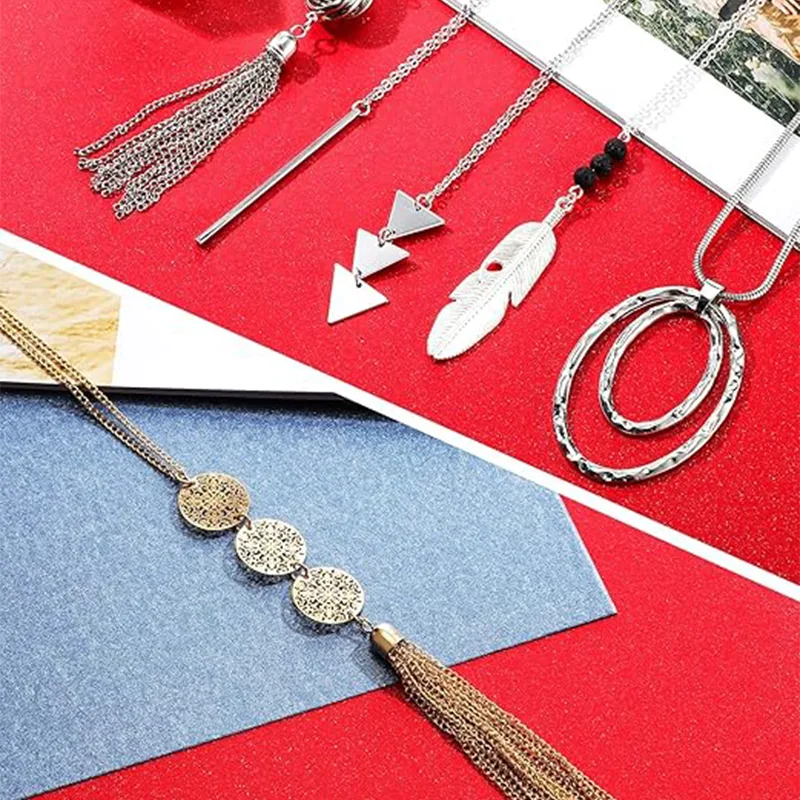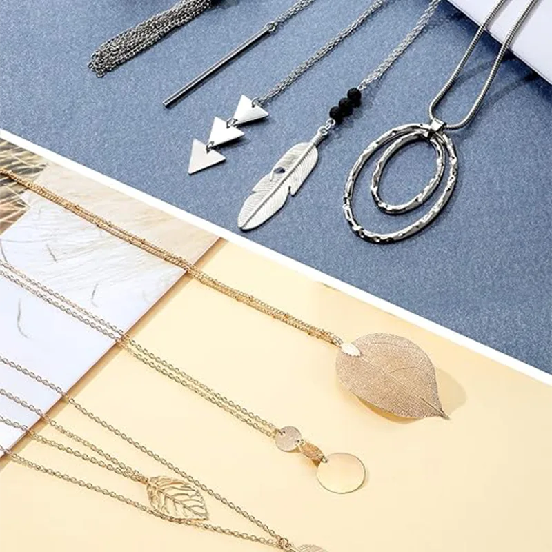 Kvinders mode sweater-halskæde er lige præcis i længden, hvilket godt kan forfine halslinjen og bryde trøjens monotoni. Uanset om det er en løs sweater, en strikket sweater eller en tyk frakke, kan parring af dem med lange vedhæng øjeblikkeligt forbedre sofistikeringen af dit outfit og tilføje flere lag til dit overordnede look.