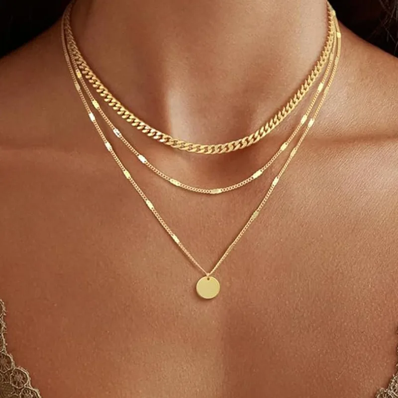 YD JEWEL har sin egen fabrik og er en producent og leverandør af forgyldte kvinders mode halskæde til kvinder i Kina. Denne model har tre lag kæder i forskellige stilarter, med 14K guldbelægning og et messinggrundmateriale. Alle er udstyret med en 5 cm justerbar forlængerkæde, der giver mulighed for enkelt slid eller lagdeling, hvilket gør den velegnet til forskellige lejligheder.